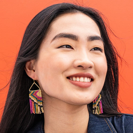 Paige Ombre Check Luxe Bead Fringe Earrings - Mixed Metalic