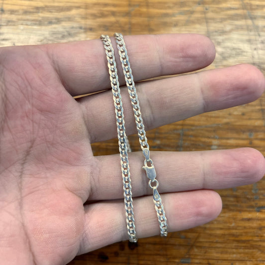 Estate Sterling Silver Matte Cuban Chain Necklace - 18"L