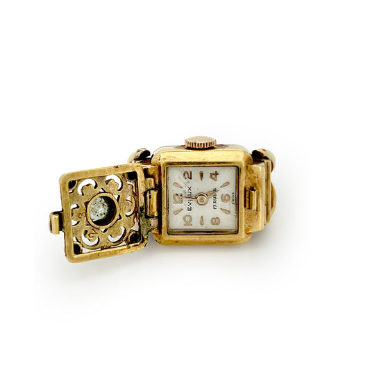 Vintage Evilux Gold Plated Hatched Ring Watch - Sz. 5.75