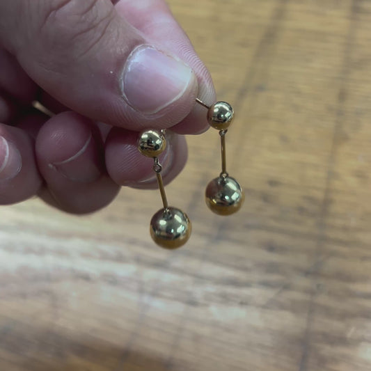 Vintage 9ct Yellow Gold Double Ball Drop Earrings