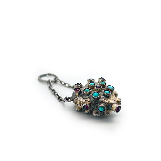 Antique Victorian Turquoise + Garnet + Gilt Silver Heart Perfume Charm