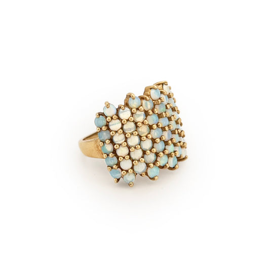 Vintage Opal + 9ct Yellow Gold Pave Ring - Sz. 5.25