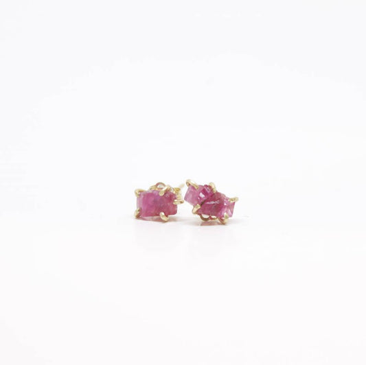 Sticks and Stones Pear Earrings - Rhodalite Garnet + Blue Sapphire