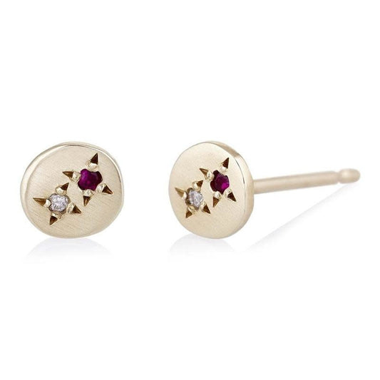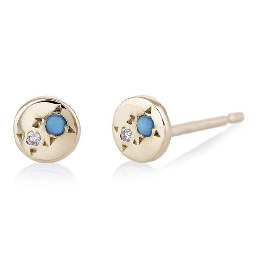 Juxtaposed Gold Stud - Diamond + Turquoise