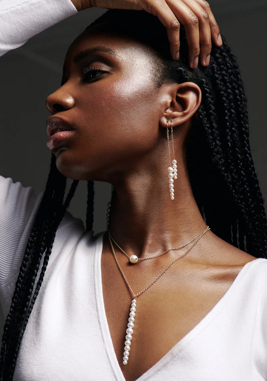 Vintage Seed Pearl + 9ct Yellow Gold Chandelier Earrings