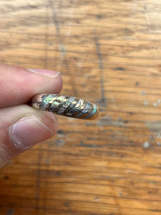 Estate Mother of Pearl + Sterling Silver Striped Ring - Sz. 7.75
