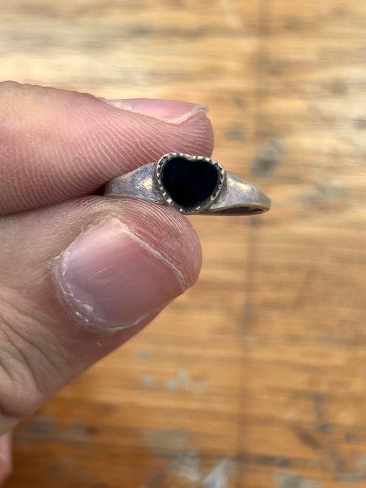 Estate Onyx + Sterling Silver Heart Signet Ring - Sz. 6.25