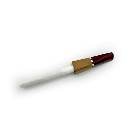 Antique Art Deco Short Black + White Band Cigarette Holder - Bakelite + Wood