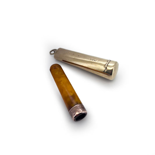 Antique Amber + Sterling Silver Cigarette Holder & Case Pendant