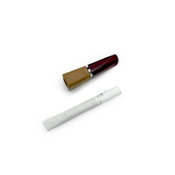 Antique Art Deco Short Black + White Band Cigarette Holder - Bakelite + Wood