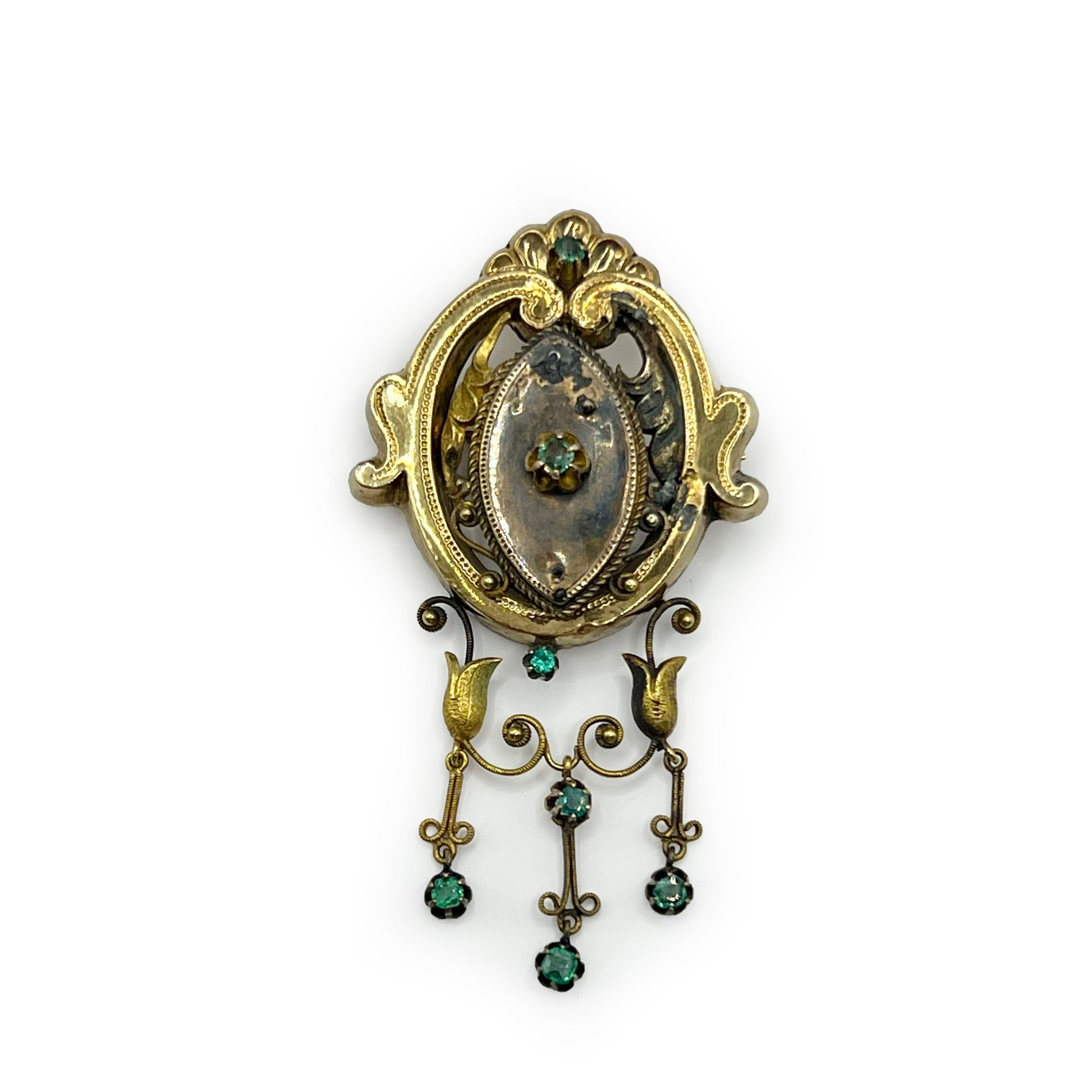 Antique Isabelina Emerald + 18ct Yellow Gold Brooch/Pendant