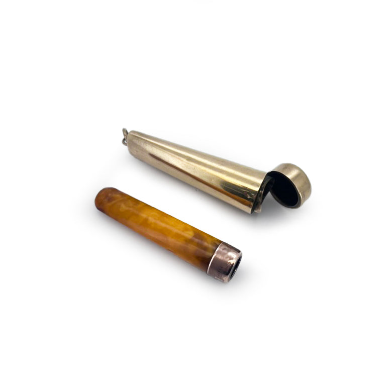 Antique Victorian Amber + 9ct Gold Cigarette Holder & Case Pendant
