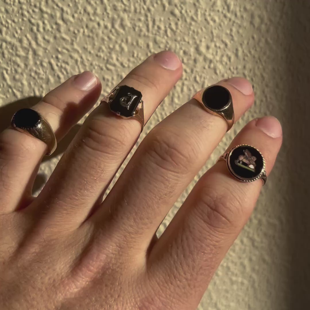 Antique Victorian Pietra Dura Lion Signet Ring - 9ct Yellow Gold - Sz 7.75
