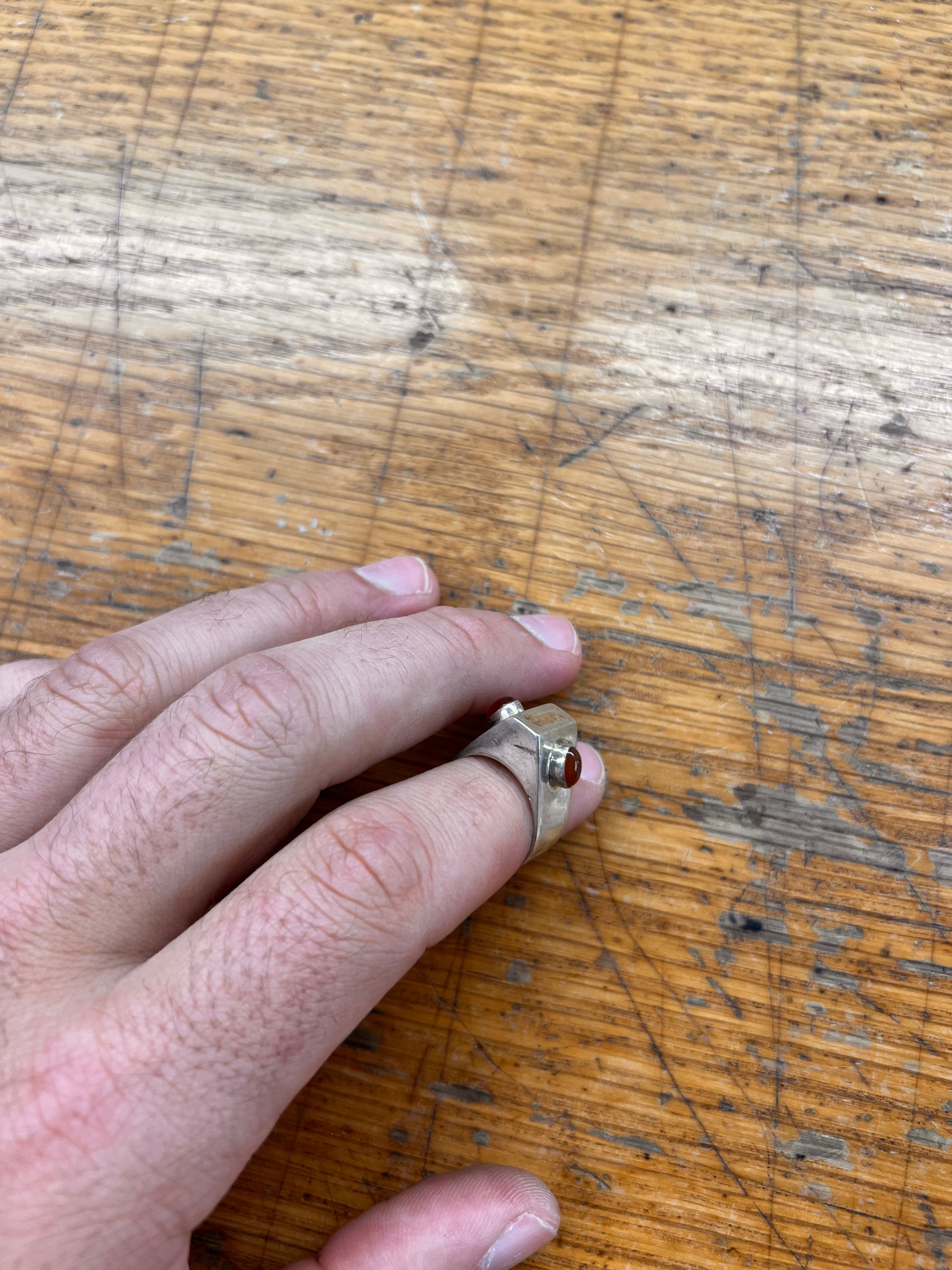 Estate Carnelian + Sterling Silver Pyramid Ring - Sz. 6.5