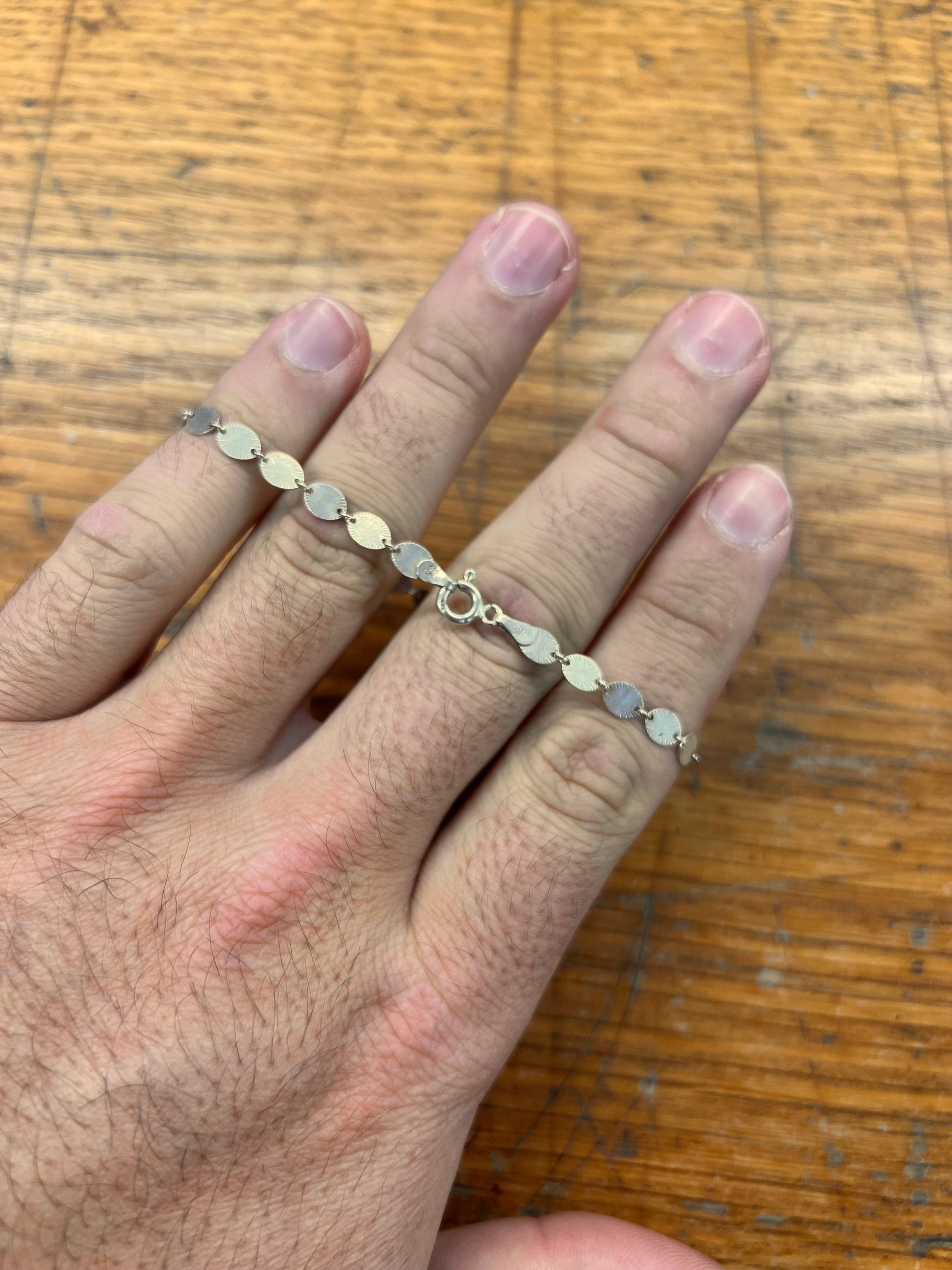 Estate Sterling Silver Disc Chain Bracelet - 7.5"L