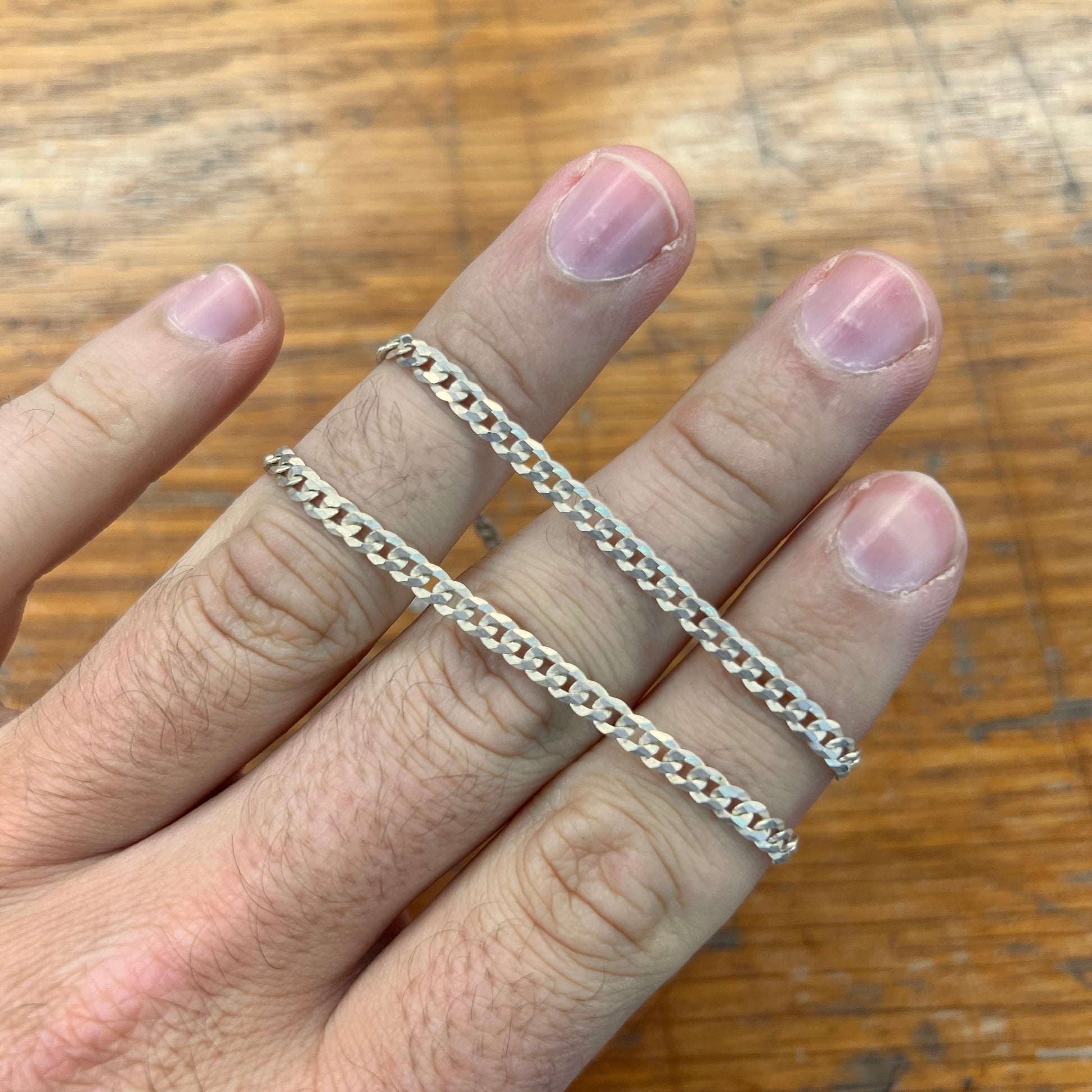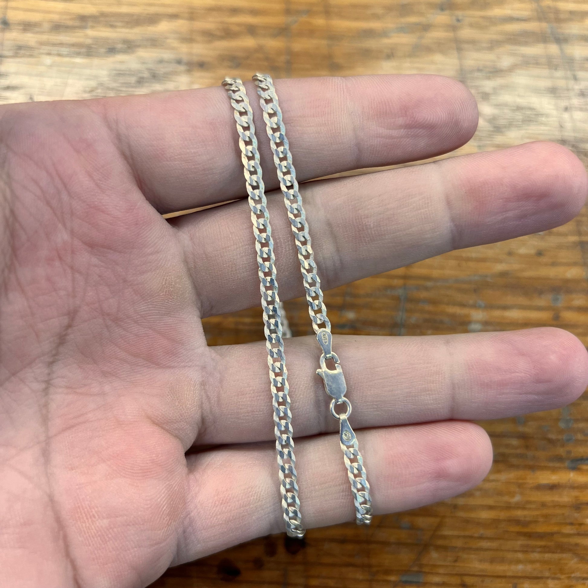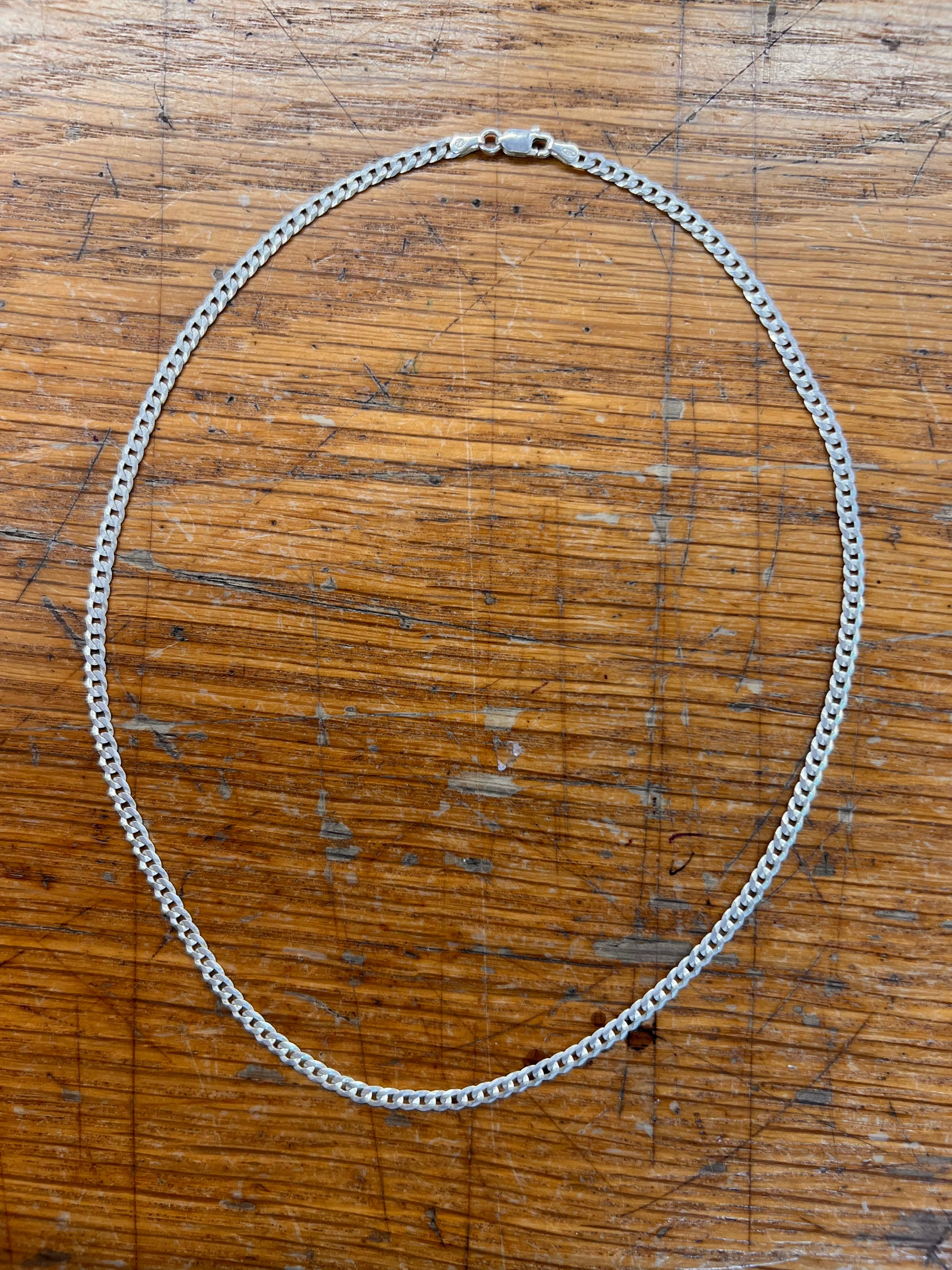 Estate Sterling Silver Matte Cuban Chain Necklace - 18"L