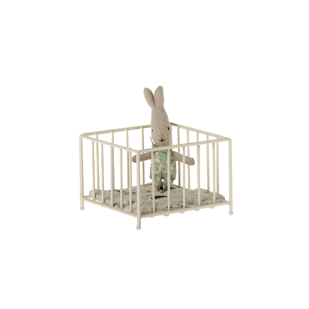 Keep your mice safe in the sweet playpen. The playpen is in metal and painted in a soft offwhite tone - the bottom is covered by a soft mattres to keep the baby safe.