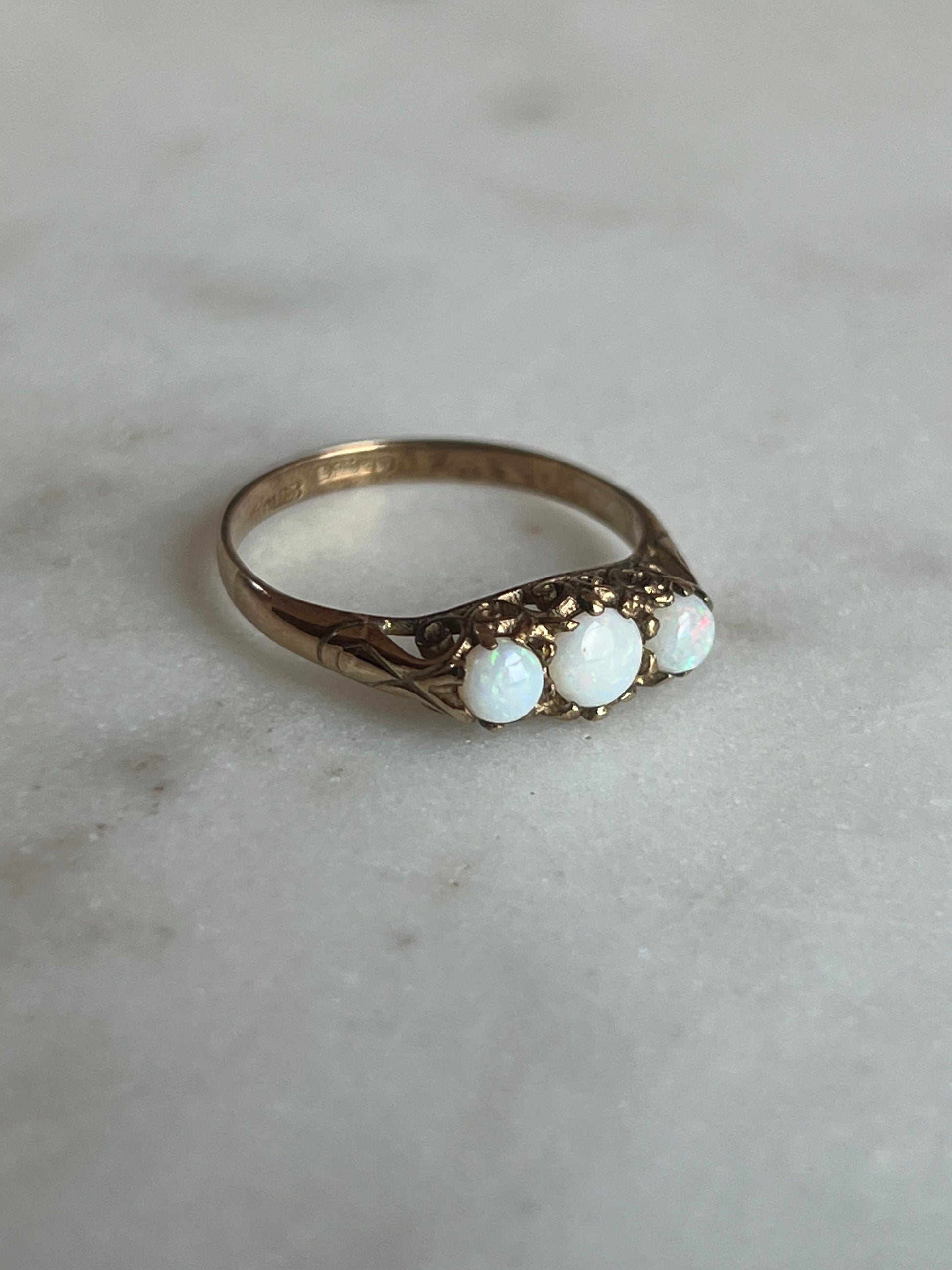 Vintage 3 Opal + 9ct. Yellow Gold Dress Ring - Sz. 7