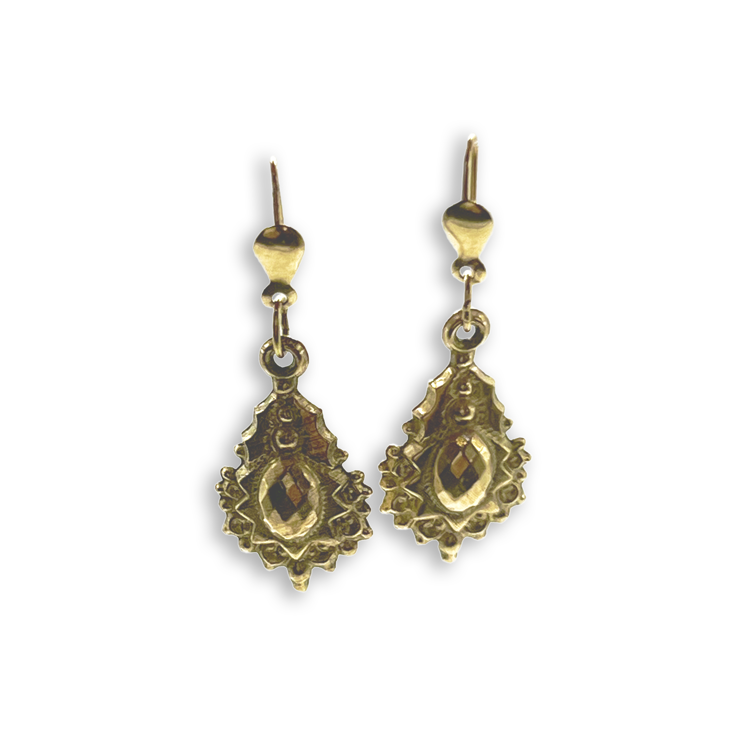 Vintage 'Picture Frame' 9ct. Yellow Gold Hook Earrings