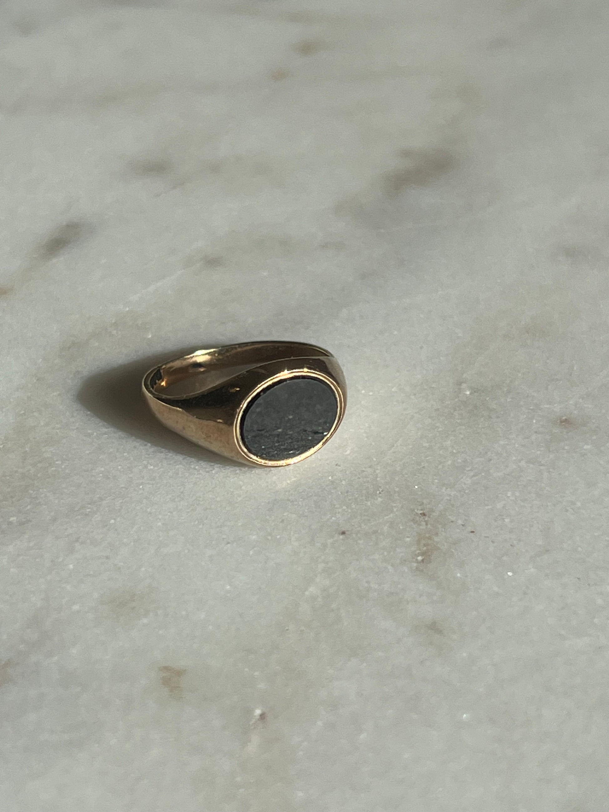 Vintage Black Onyx East-West 9ct. Yellow Gold Signet Ring - Sz. 6.5