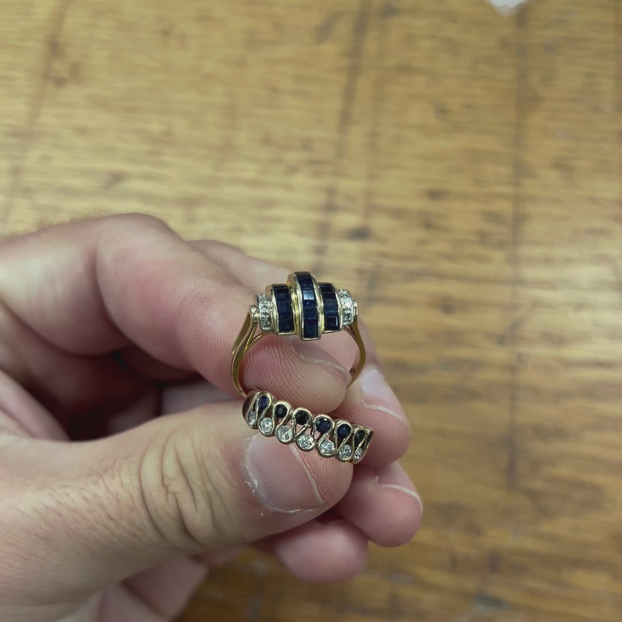 14 Square Blue Sapphires + 8 Diamonds