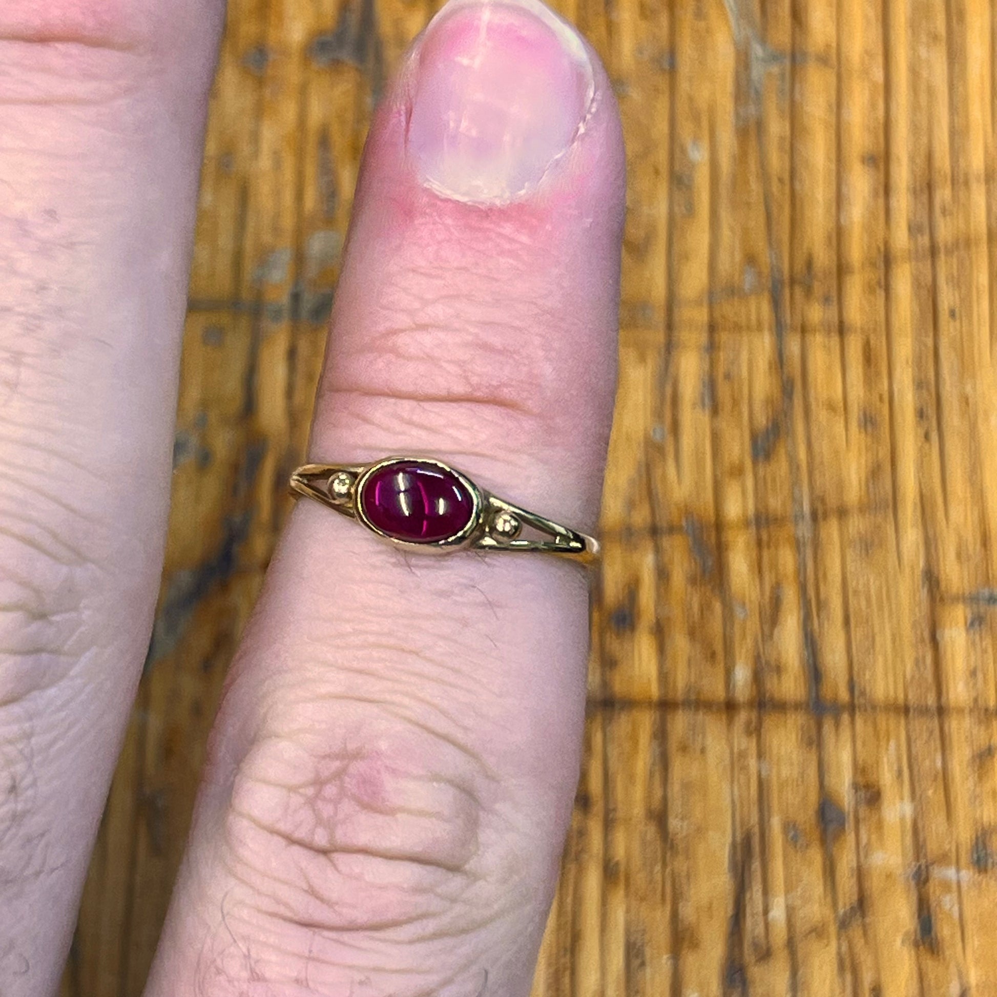 Vintage Cabochon Garnet + 9ct Yellow Gold Ring - Sz. 7.5