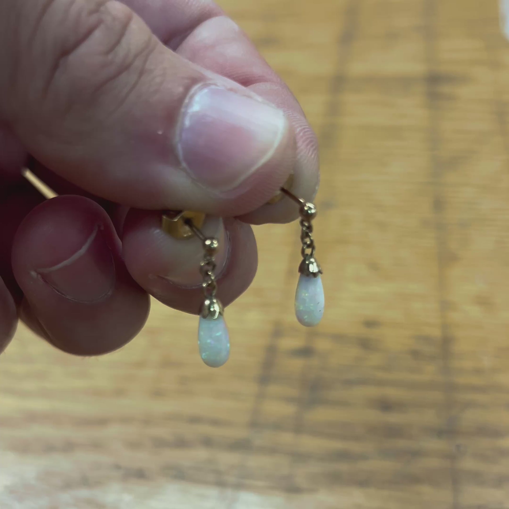Vintage Opal + 9ct Yellow Gold Chain Drop Earrings